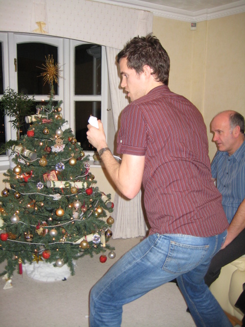Pacified a bit too much by golf, someone (probably me) decided to ramp up the energy levels by switching to boxing. Or at least I presume that is the case given the left, right combo that Aunty Janet is enthusiastically engaging in. Personally, I fear for the Christmas tree, although Uncle Graham is far more amused than concerned by the prospect of the decorations being scattered everywhere. Given the frenetic violence in AJ's technique, it was a distinct possibility.