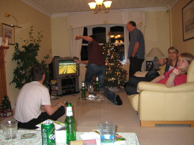 I have somehow relinquished the camera, presumably to Matt, so I finally feature. Of course, I had a beer in my hand, and I was somewhat closely flanked by Uncle Graham and Nana Sue. Hang on a second, though. If Matt is taking the photo and Mum is on the sofa, who the hell is watching the Christmas dinner!? It may well have been Lynne or Katie taking the photo actually, given the angle, so that perhaps explains it.