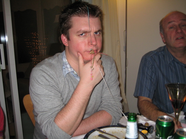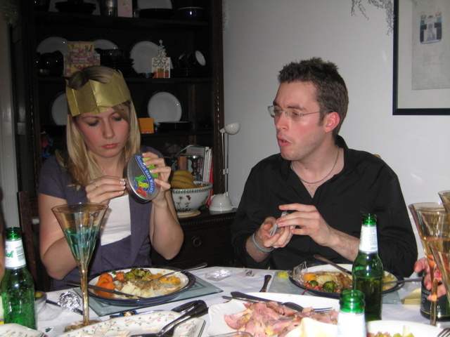 (I should say that I have no idea about timeline here. The photos are named Christmas Day 2007 0xx, which is how they would appear on my laptop if I named the download, but there is no record of the time that they were taken. For most of these photos, it seems dark outside, but it does feel like we're not having Christmas dinner forever. It might just be 6pm, though, and of course we had eaten our body weight in starters.)