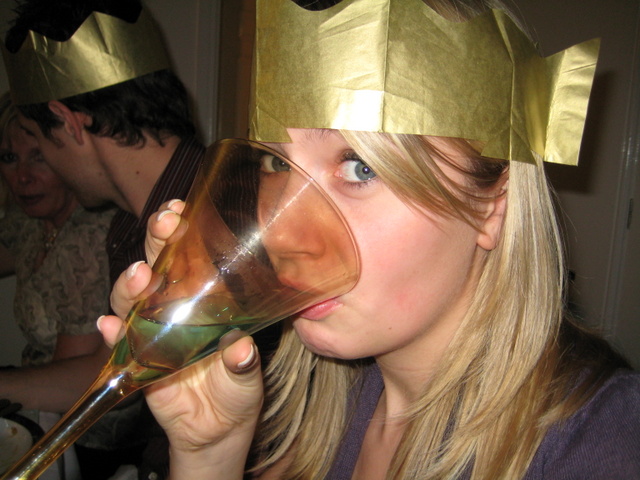 Katie is correctly identifying the one true approach to dealing with family Christmases: bury your head in a huge glass.