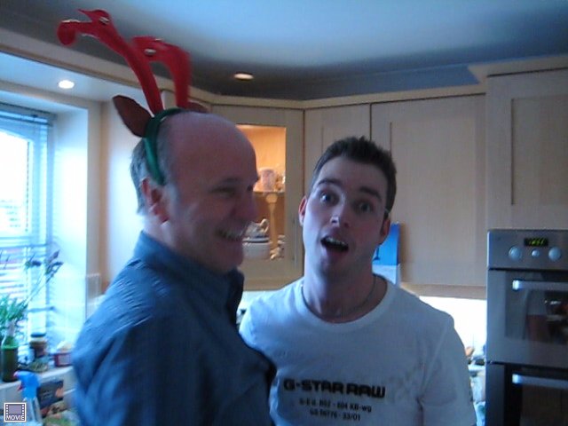 And that endeth the night. No more photos of the frivolities of the night exist, so it falls upon me to finish with some out-takes of sorts. These are stills from some of the videos taken on the night. Firstly, back when it was actually daytime, this is Rudolph, I mean Uncle Graham, greeting Matt, who was pretty shocked by receiving a big, fat hug.