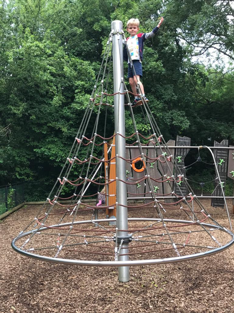 When they were back, I took a day off and we went to Torkington Park in Hazel Grove, seemingly just for more climbing frame action. Daisy is in the background, cap on backwards.