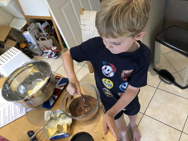 I obviously felt comfortable letting Gregory loose with the electric whisk to get the icing mixture to the right consistency. No splatter evident.