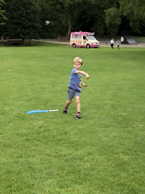Thankfully it was a lovely day on my birthday so we went into the back garden to play cricket. It looks like Gregory has made good contact with an agricultural mow across the line.