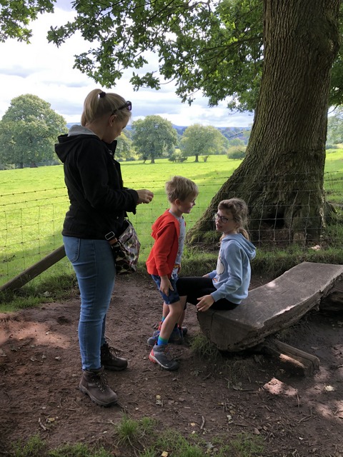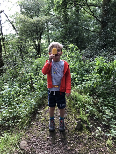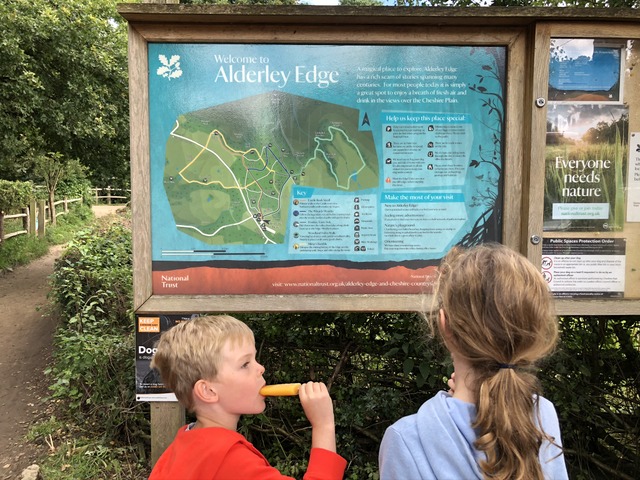 It's bank holiday Monday and time for a trip to Alderley Edge to do one of the Wizard Walks (and specifically the Donkey Track Trail, records suggest). Daisy consults the map while Gregory merely stares at Daisy, sucking on an orange ice lolly. Daisy hadn't hung around with her chocolate ice cream, or it is perhaps obscured.