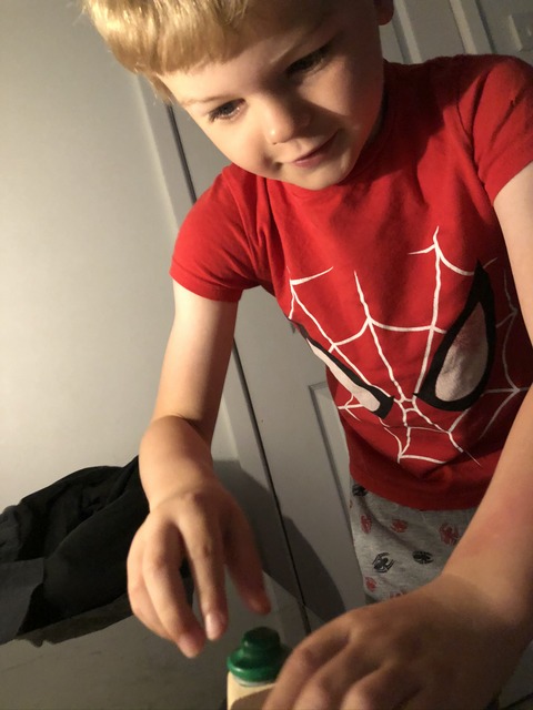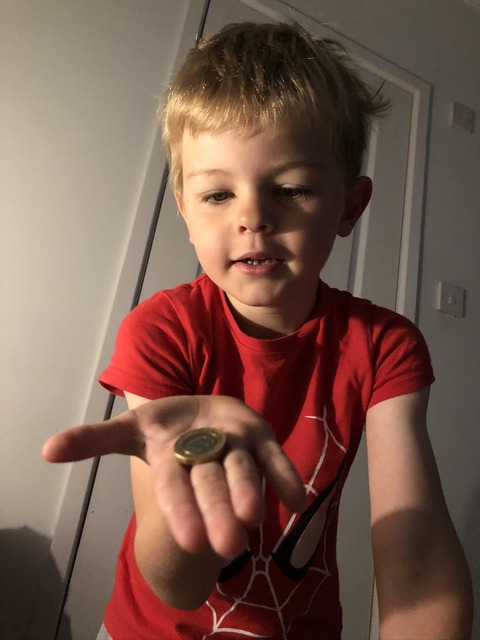 The next day, we find out if the tooth fairy has been. And the answer is: yes! (Phew.) The spider-dude is £1 richer.