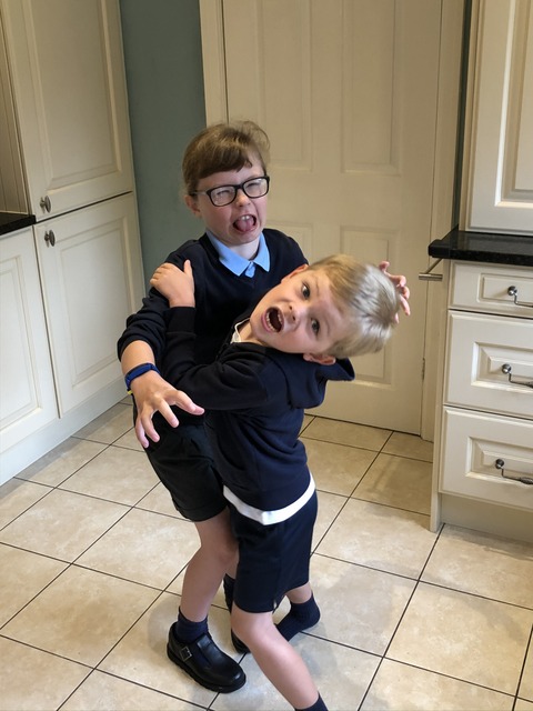 Well, it's time for school, as Gregory enters Year 2 (and Daisy goes into Year 5). It is evidently PE day on the first day, which is a bit of an odd start, so we don't get Gregory in full school uniform. His poses with Daisy vary from sensible to crazy. It's to be expected (and I may even have asked for it).