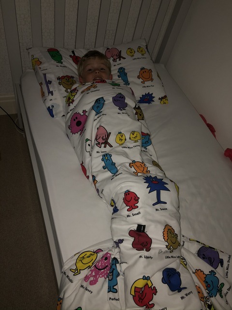 This is likely from the period where Gregory liked to be made into a sausage roll, although with the tail he looks more like a mermaid. He definitely looks snug either way.