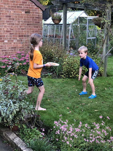 We've reached the weekend now (not that Gregory would notice much given it's the school holidays) and it's time for some cricket action. Unfortunately, as noted above, due to the lockdown situation, Gregory had relatively few (perhaps two) opportunities to take part in the Heaton Mersey cricket club training, so here he is in the back garden with an immaculate straight bat shot (although if I am being ultra-critical, he has stepped a little far outside of leg stump, perhaps influenced by the pitch layout, with the house forming an impervious legside block). The sandpit operates as an immobile but cavernous first slip.