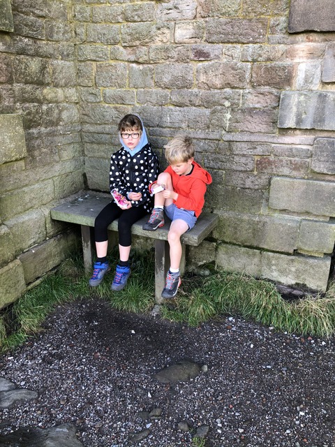 Of course, if you are cold then you can sit in a sheltered bit. Slightly contrasting is Daisy's headwear and Gregory's shorts, although he was always pretty resistant to changes in clothes (from short sleeves to long sleeves and from shorts to trousers in particular).