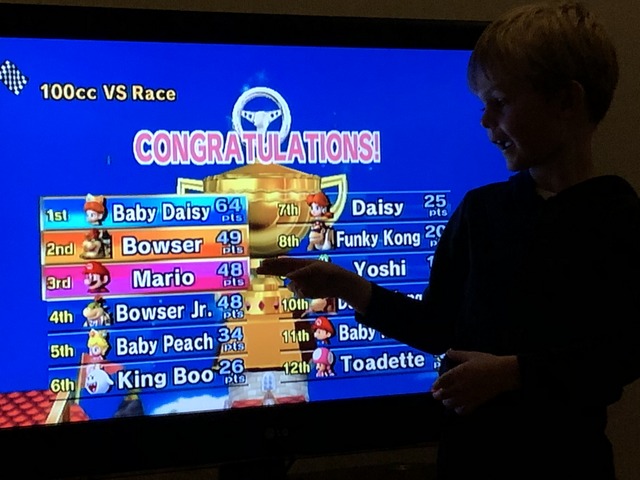 Gregory's Mario Kart Wii skills were clearly improving, as he scraped into third place in a 100cc Grand Prix. It looks very much look Daisy has won every race while I have slotted into an unconvincing second with an unusual choice of character for me (I usually defaulted to Luigi for what it's worth).