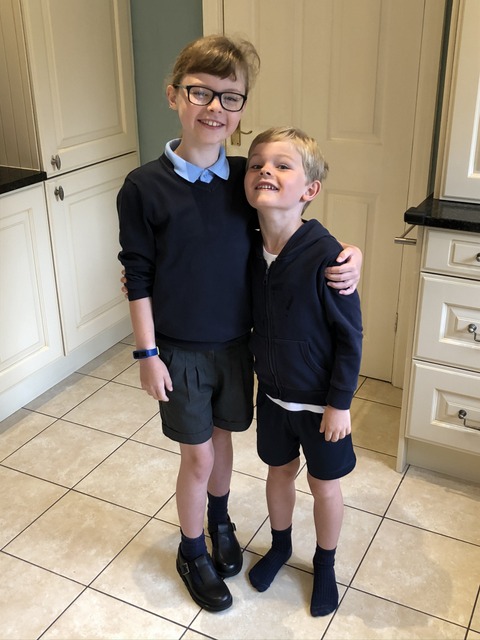 Well, it's time for school, as Gregory enters Year 2 (and Daisy goes into Year 5). It is evidently PE day on the first day, which is a bit of an odd start, so we don't get Gregory in full school uniform. His poses with Daisy vary from sensible to crazy. It's to be expected (and I may even have asked for it).