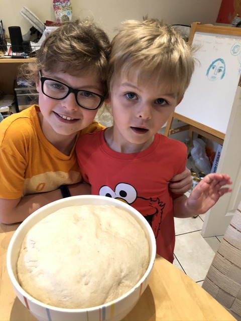 It's time for novelty bread making time, as the kids mix the dough.